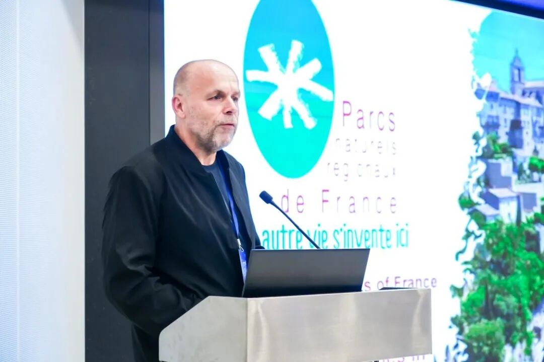 法国大区自然公园联合会领土发展主管尼古拉斯·萨纳(Nicolas Sanaa)阐释了景观作为区域自然公园在地项目的可视化转移的实践路径,包括通过多学科专业知识,景观图谱、影像观测站和景观规划等工具助力构建生态、能源与社会转型,使规划政策植根于共同的地域认知等。