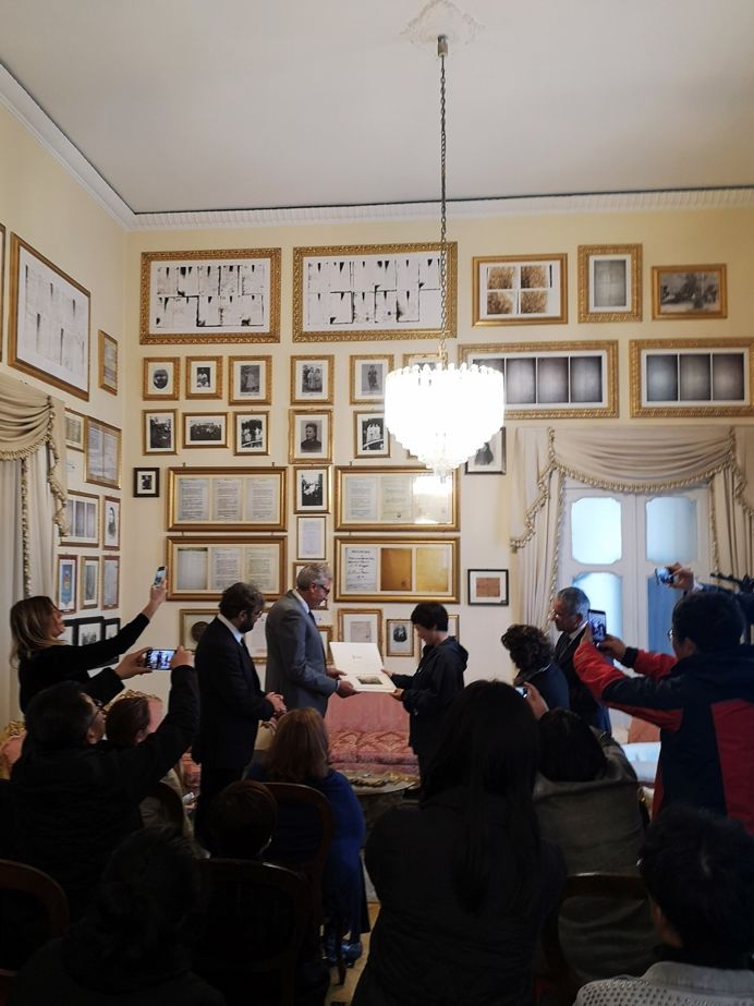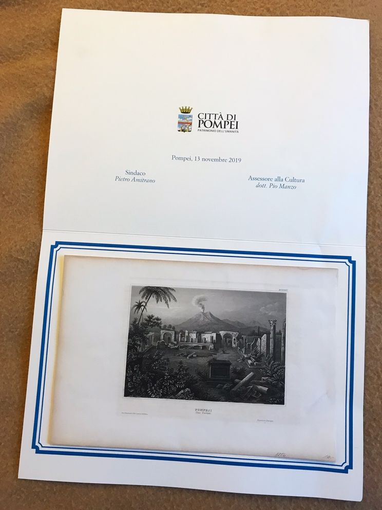庞贝市长向中国代表团赠送1856年庞贝古城版画纪念品