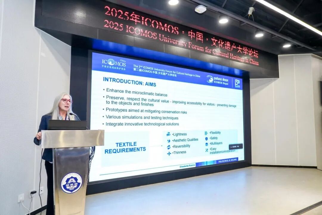 意大利米兰理工大学教授埃莉莎白·罗西娜(Elisabetta Rosina)聚焦于解决历史表面因微气候失衡而面临的劣化风险,展示了创新型纺织屏风(textile screens)作为可逆、非侵入性的解决在减缓室内外空气交换造成危害中的应用。