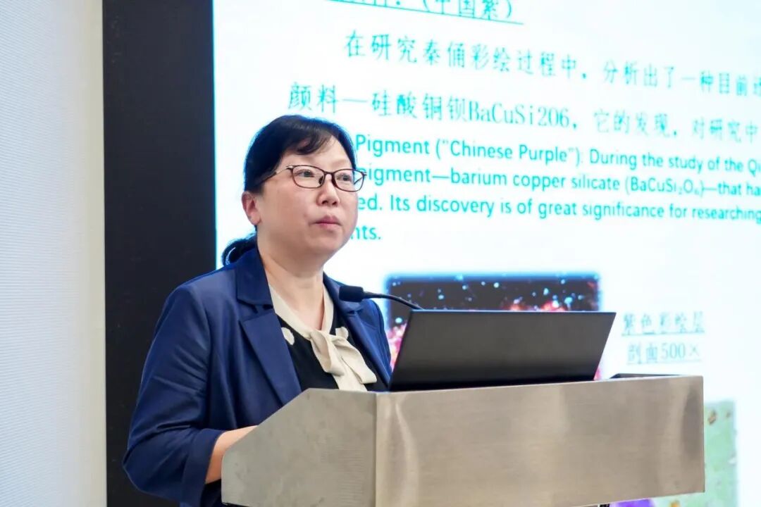 秦始皇帝陵博物院副院长周萍分享了秦始皇帝陵博物院应用现代科技手段,进行文物的病害调查、基础研究、检测分析、保护修复以及展示利用,实现文物的全链系统性保护方面的经验。